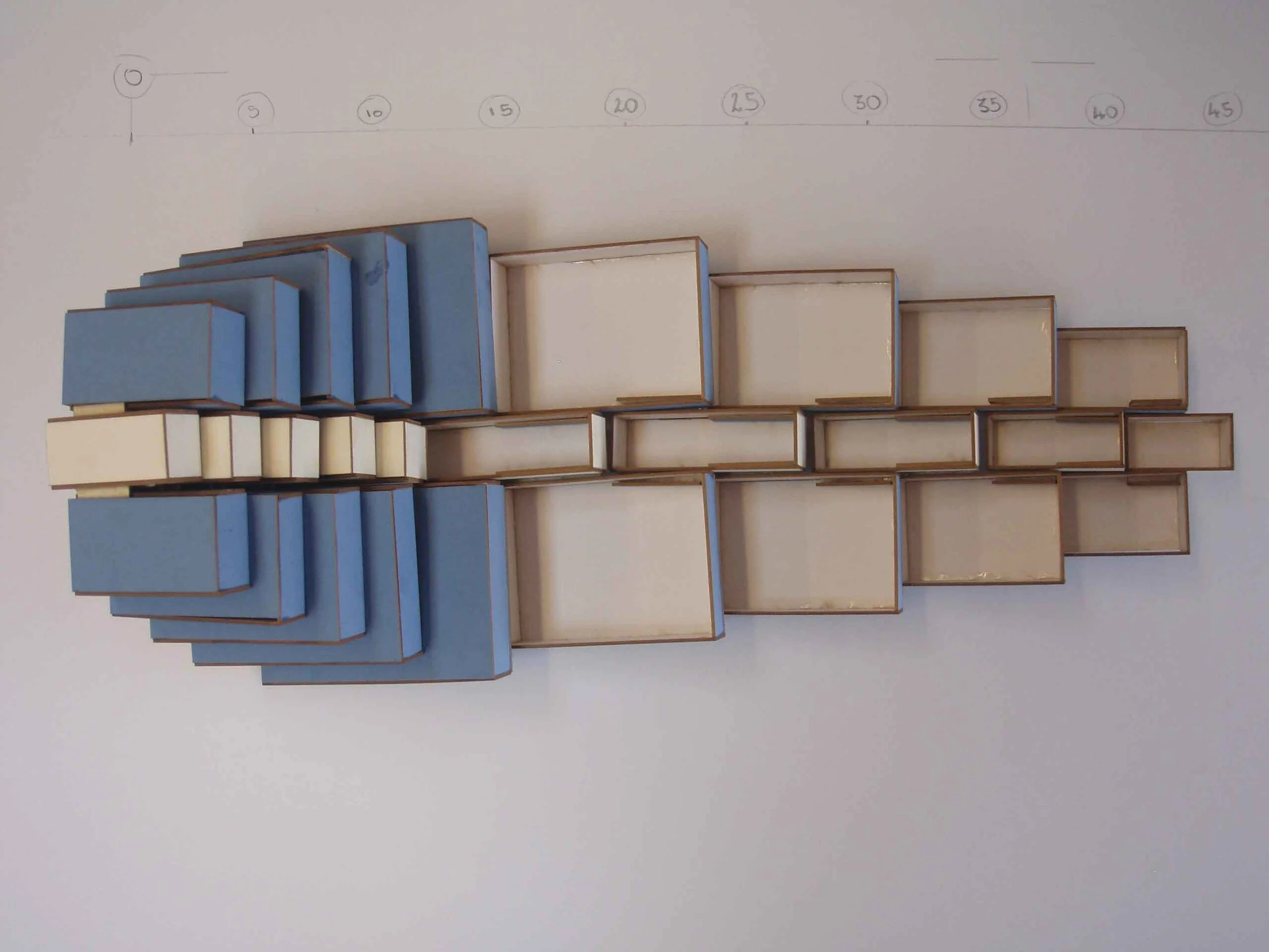 The table was assembled from the study of the natural world. Developed from research to construct stacked building blocks over an edge to produce an overall harmonic formation. The principles of mirroring and weight were used to arrive at an honest construction and purity of form.